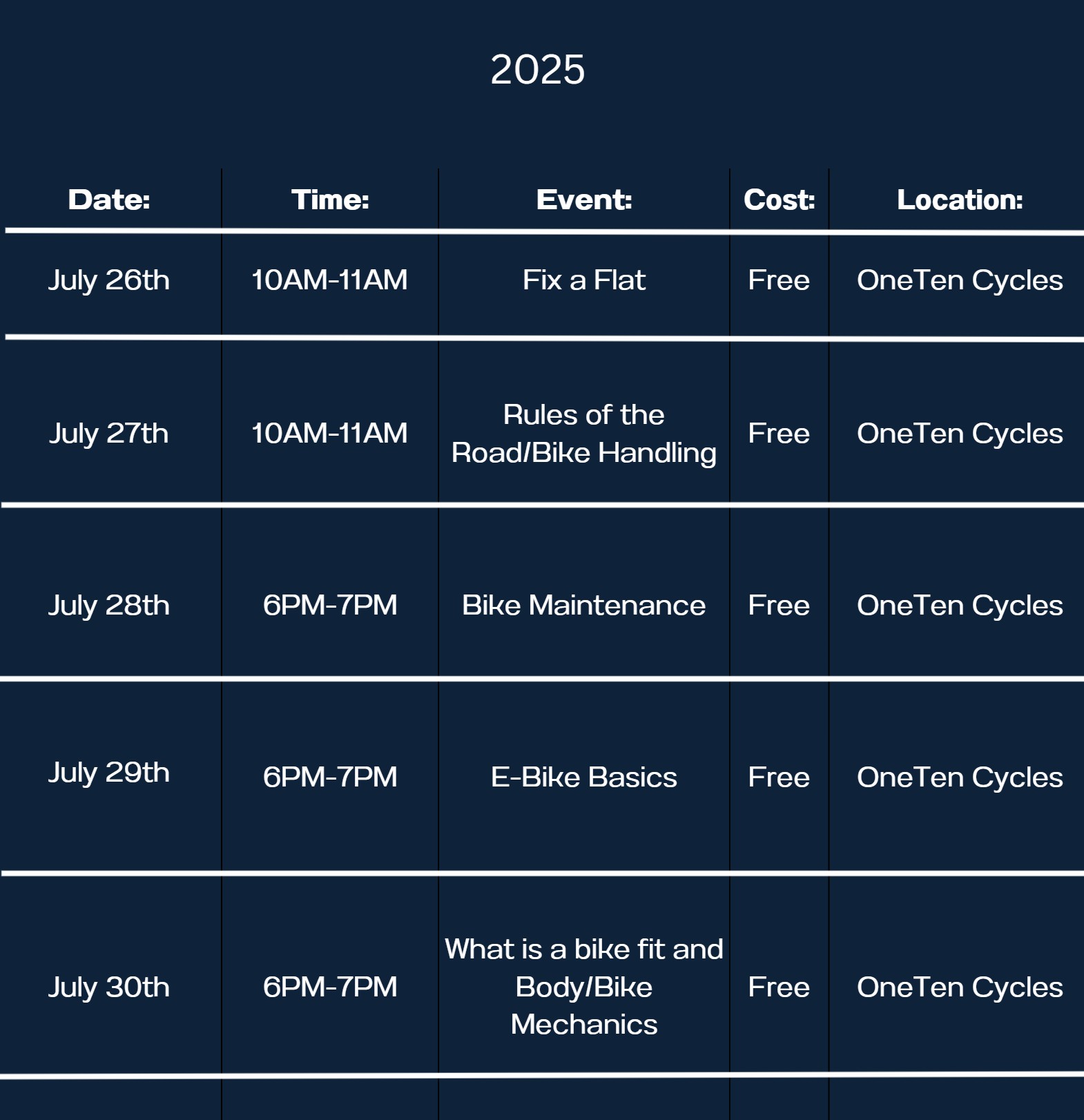 At OneTen Cycles, we love nothing more than riding our bikes and helping you enjoy the ride as well! We host many events, both in our shop and out on the trails - check out what we're up to and visit us soon to learn more.
